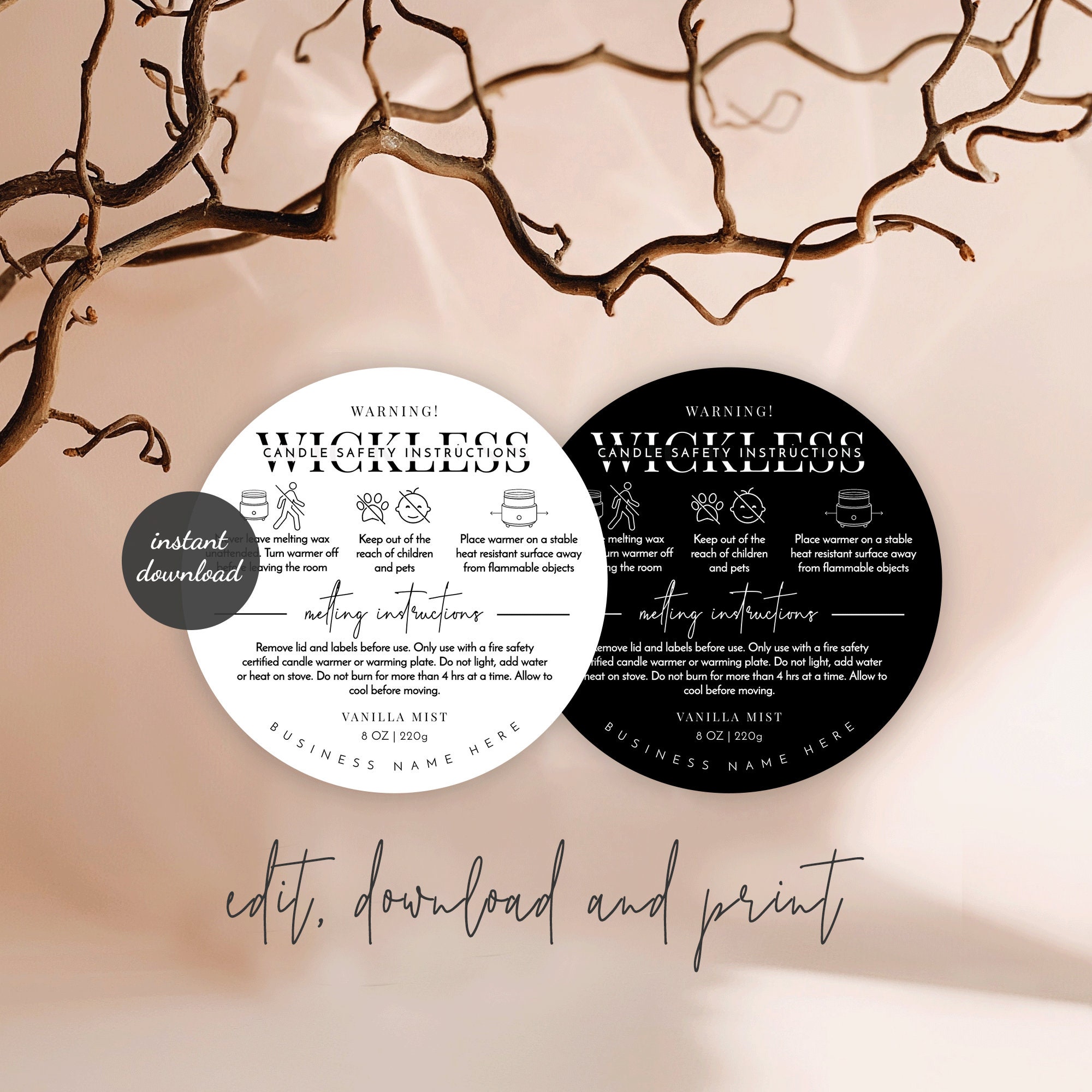 Candle Warning Labels - Digital Download (Pdf) - Keerzy CANDLE WARNING LABELS - DIGITAL DOWNLOAD (PDF) Description KEERZY.COM 24 x CANDLE WARNING LABELS 45MM CIRCLE Choose from Generic Labels or CAN BE PERSONALISED WITH YOUR BUSINESS INFO OR ANY TEXT YOU REQUIRE. OR INSTANT DIGITAL DOWNLOAD TO PRINT AT HOME (CONTAINS 24 LABELS READY TO PRINT ON STANDARD A4 PAGE)