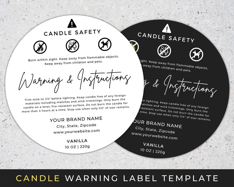 Candle Warning Labels 2 Inch - CandleScience Burning Instructions: Trim wick to 1/4" before lighting. Keep candle free of any foreign materials including matches and wick trimmings, Only burn the candle on a level, fire resistant surface. Do not burn candle for more than four hours at a time. Stop use when only 1/4" of wax remains. Candle Label Templates - Design Free Online | SheetLabels.com® Design your own candle labels fast and easy, no professional design experience needed! Choose from round or rectangular designs, or upload your own design - custom labels are available in any size, shape & material. Free support available from our friendly label printing experts. Professional Design Review. Quality Guarantee.
