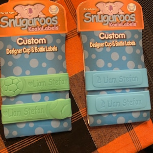 Reusable Sippy Cup Labels (Giveaway) - 5 Minutes for Mom The Sippy Grab and Snugaroos labels are sturdy, flexible and fun looking elastic bands that wrap around most size sippy cups, and they are safe for the microwave and dishwasher. Both are reusable labels that are thick enough to withstand childhood with fun textured designs to add style to any sippy cup or baby bottle.