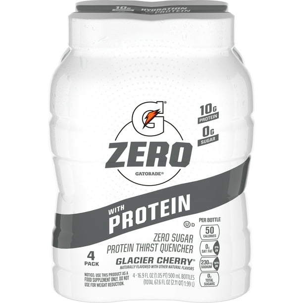 Gatorade Zero Sugar Protein Thirst Quencher Glacier Cherry Naturally Flavored 16.9 Fl Oz 4 Count
