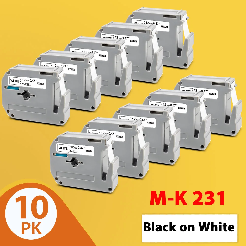 10PK Black on White M-K231 Labels For Brother MK 231 MK-231 Label Tape M Tape 12mm Labeling Tape For Brother P touch Label Maker - AliExpress Computer ...