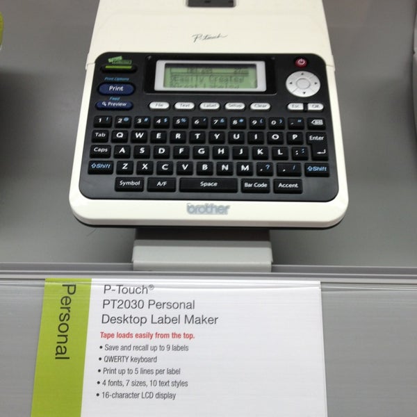 Labels & Label Makers - Sam's Club Save big on labels and label maker supplies for your office or home at Sam's Club. We bring you the office supplies you need at budget-friendly prices. ... Brother P-Touch TZe12313PK Laminated Tape for Brother Label Makers- 3 Pack . Average rating: 4.6087 out of 5 stars, based on 69 reviews (69) current price: $28.48 $ 28. 48. Current price ... Label Maker Tape & Refills | staples.ca Brother Genuine TZe241 Black on White Laminated Tape for P-touch Label Makers, 18 mm wide x 8 m long ★★★★★ ★★★★★ ( 141 ) Brother Genuine TZe251 Black on White Laminated Tape for P-touch Label Makers, 24 mm wide x 8 m long ★★★★★ ★★★★★ ( 92 ) Brother Dk4205 2.4" Removable Continuous Paper Label Tape, Black On White ★★★★★ ★★★★★ ( 4 ) Label Makers (P-Touch) - 20$ - Staples - RedFlagDeals.com [Staples] Label Makers (P-Touch) - 20$ - Staples. Retailer: Staples. More offers from Staples. Brother P-Touch PTD210BK: ... Very easy to use and cheap tapes available on Amazon. Two negs: it uses 6 batteries and max size tape is 12mm. I would have liked a wider tape as well for the workshop - I got spoiled with an expensive label maker at work