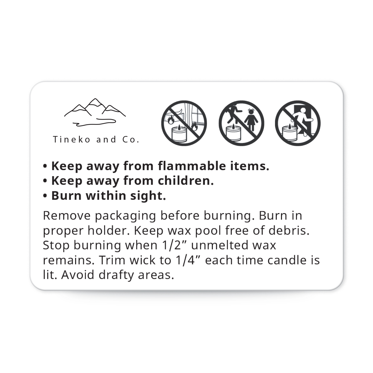 Warning Labels for Candles | Natures Garden Candle Supplies Warning Labels for Candles- 100 Count. Warning label size: 1.25 inch diameter. Warning Label Reads: Caution: Failure to follow instructions could result in fire hazard, injury, or smoke damage. Keep wax free of matches, wick trimmings, or other flammable materials. Keep wick centered & trimmed to 1/4 in. to prevent smoking & soot build up on ...