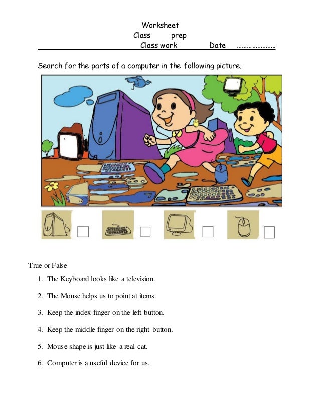 Computer worksheet for Class 1 - Liveworksheets.com School subject: Computer Grade/level: Class 1 Age: 4-6 Main content: Parts of computer Other contents: Add to my workbooks (3) Embed in my website or blog ... More Computer interactive worksheets. Google Docs Worksheet by tirza1412: Parts of computer by Aarti20: Google Slide Interface by ice1125: Computer Mouse by Nadiasya: