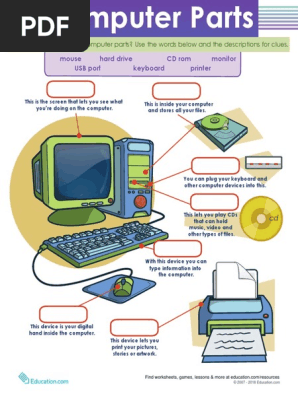 Computer Grade 1 Worksheets - TheWorksheets.CoM - TheWorksheets.com TheWorksheets.com Computer Grade 1 Worksheets Results Module 1 Handouts Computer Basics Computers The keys that operate the computer, very much like a typewriter, with extra keys for special functions. 3. Monitor The part of a computer system that contains the computer screen, where information is displayed.