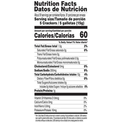 Saltines nutrition label. Best and Worst Cracker Choices: Calories in Favorites Jun 09, 2022 · A single serving of saltines (5 crackers) contains 62.3 calories, 11 carbohydrates, and 1 gram of protein. Some brands of saltines (and other crackers) are made with partially hydrogenated oils or trans fat. Health experts recommend that you reduce or eliminate your intake of trans fat. Campbell's Condensed Tomato Soup, 23.2 Ounce Can - Walmart.com Refer to the product label for full dietary information, which may be available as an alternative product image. 5.0 Servings Per Container Serving Size 1/2 cup (120 mL) condensed soup Saltine Toffee Cookies - Allrecipes Immediately pour over saltines and spread to cover crackers completely. Bake in the preheated oven for 5 to 6 minutes. Remove from the oven and sprinkle chocolate chips over top. Chicken Fried Chicken - Allrecipes Show Full Nutrition Label Hide Full Nutrition Label. Nutrition Facts; Servings Per Recipe 6; Calories 887 % Daily Value * Total Fat 80g 102% Saturated Fat 11g 55% ...
