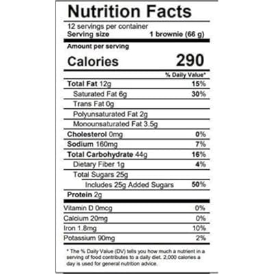 Cosmic brownies food label. Cosmic Brownies Nutrition Facts - Eat This Much with Chocolate Chip Candy, Big Pack - Little Debbie ; For a Serving Size of 1 brownie (66g) ; How many calories are in Cosmic Brownies? Amount of calories in ... Caramel Brownies - Insanely Good Sep 28, 2021 · Double wrap individual brownies with plastic wrap and aluminum foil. Place them in a freezer-safe bag, squeeze out as much excess air as possible, and seal. Label the bag accordingly. Frozen caramel brownies will keep well for up to 4 months. Thaw the brownies at room temperature and microwave them for a few seconds before serving. Cosmic Crisp Apples, Each - Walmart.com Cosmic Crisp®️ apples are prized for their vibrant red color, pearl-colored flesh, perfectly balanced flavor and delightfully crisp texture. An excellent choice for baking, snacking and entertaining, Cosmic Crisp®️ apples are the delicious result of 20 years of research by Washington State University’s world-class tree fruit breeding ... Little Debbie Cosmic Brownies with Chocolate Chip Candy - H-E-B Sodium, 160mg, 7% ; Total Carbohydrate, 42g, 14% ; Dietary Fiber, 1g, 4% ; Sugars, 24g ...