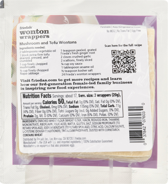Wonton Wrappers Nutrition Facts - Eat This Much Wonton Wrappers Twin Marquis Find on Amazon Percent calories from... Quick stats 180 Calories 40g Carbs (39.5g net carbs) 0g Fat 6g Protein No price info Try our free Diet Generator I want to eat calories in meals. I like to eat Generate Not the food you're looking for? Try these: Wonton wrappers (includes egg roll wrappers) Wonton Wrappers Friedas