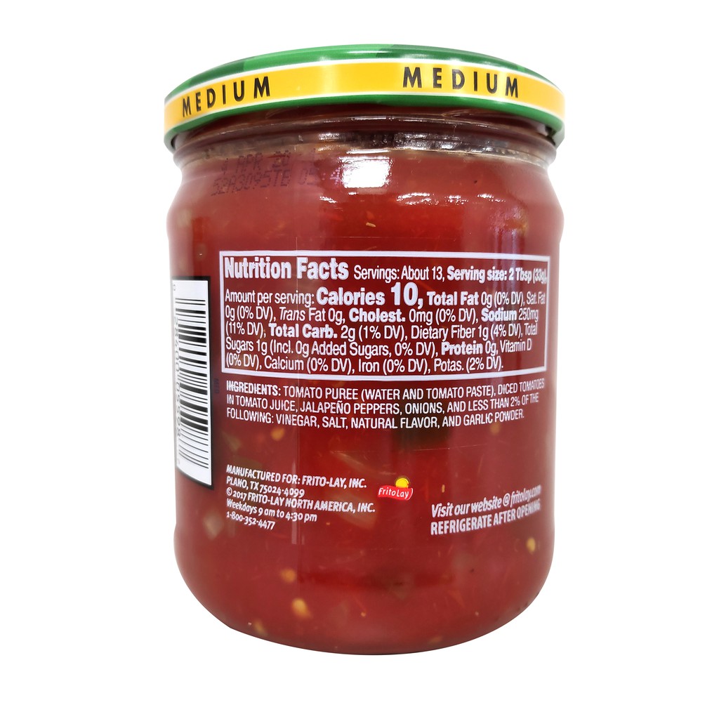 Tostitos Salsa, Medium Chunky Salsa, 15.5 oz Jar - Walmart.com This Medium Tostitos Chunky Salsa is a tasty addition to your pantry. It is ideal for eating with tortilla chips, corn chips, meals and more. ... Fritos Original Flavor Bean Dip, 40 calories per 2 tbsp serving, 9 oz. 764 4.5 out of 5 Stars. 764 reviews. Pickup Delivery 3+ day shipping. Tostitos Salsa, Medium Salsa Con Queso, 15 Oz Jar. Rollback ... Is Tostitos Salsa Vegan? (Find Out Now!) - Choosing Nutrition That said, some Tostitos salsa flavors are non-vegan because they include whey protein concentrate or isolate. One of the best vegan alternatives to Tostito's salsa is Simple Truth Organic Salsa. ... 10 calories per serving; 250 mg sodium or 10% DV; 2 g carbohydrates or 1% DV;