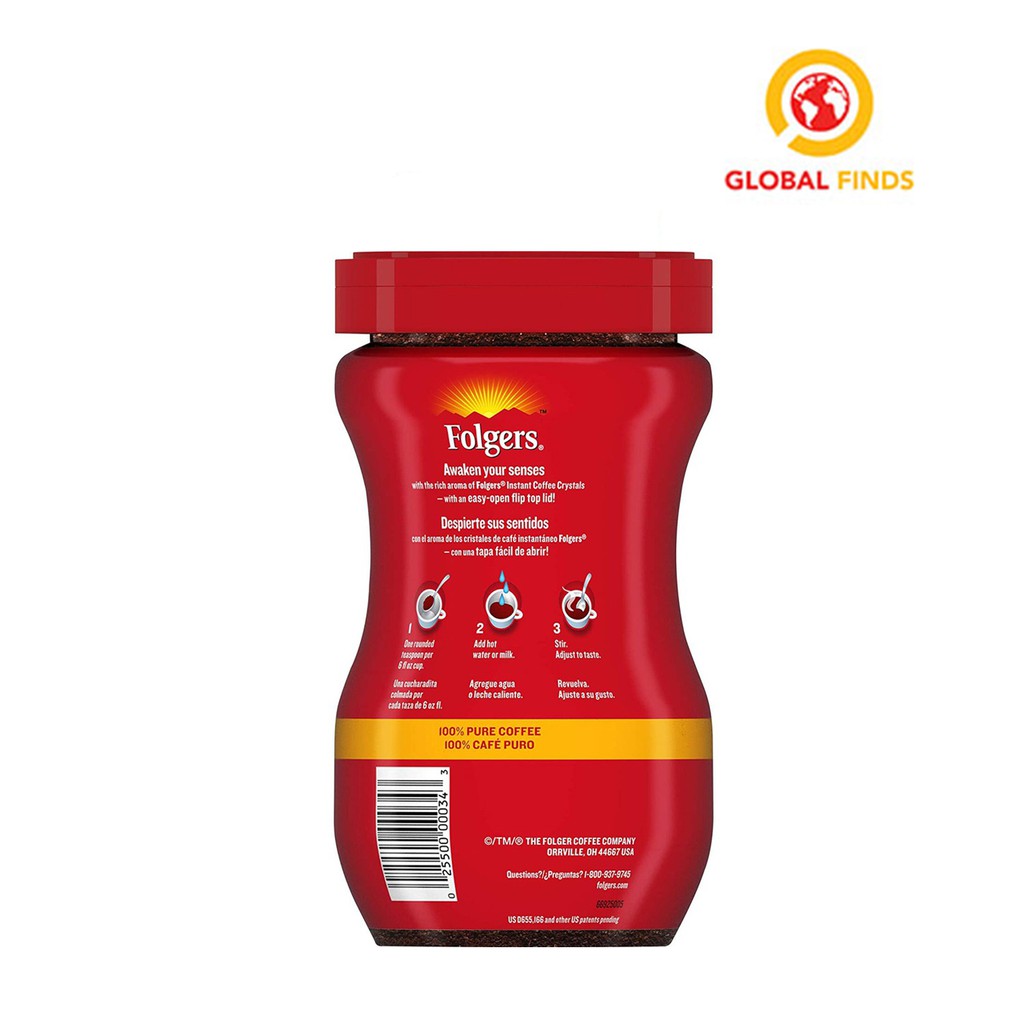 Folgers Classic Roast® Instant Coffee The classic Folgers® taste you love is available in convenient coffee crystals for flavorful coffee in a hurry. With an easy-open flip-top jar, Folgers Classic Roast® Instant Coffee Crystals is the fastest way to get the coffee you crave. Just add hot water or milk! Mild Medium Med-Dark Dark Find Product Available in: Reviews Write a review